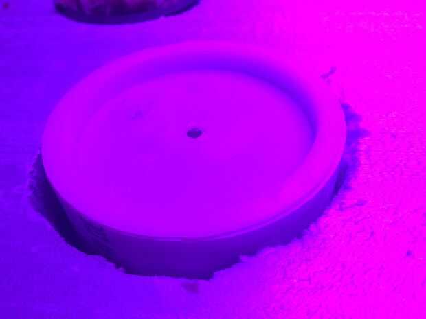 Por último, usted necesita cortar el PVC de 3 pulgadas a una pulgada por encima de la altura del sifón. Hacer una especie de agujeros en la parte inferior del tubo y la tapa la tapa, perforar un agujero para el aire. Usé mi kit dado para cortar almenas como una torre del castillo.
