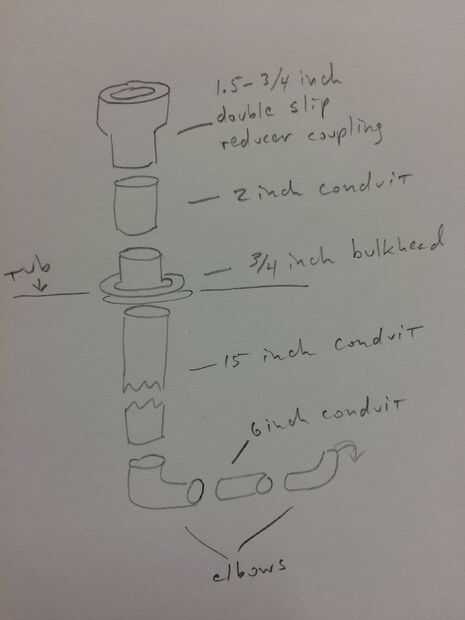 Poner el codo debajo de la pieza de 15 pulgadas y el pedazo de 6 pulgadas en eso. Entonces puso en el último codo.