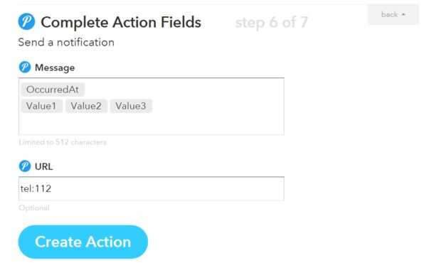 * Escriba el mensaje y la URL en el campo de acción.