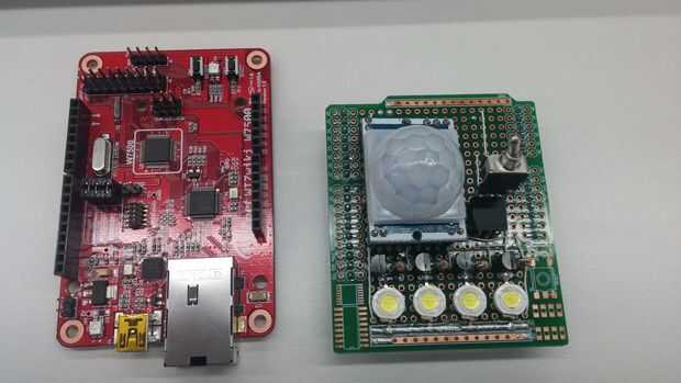 * Cable pin de datos del Sensor de PIR al D8 en WIZwiki-W7500.