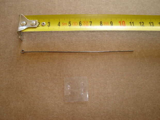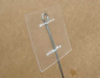 Tome un pedazo de acero delgada o alambre de cobre amarillo, 10 cm o más. Palillo de la vela como si se donde un periscopio o antena. Deslice sobre una pieza rasgados de plástico como se muestra. Utilizando plástico transparente le da un buen resultado, siendo casi invisible en el agua. Usted puede cortar de empaquetado de la ampolla o de una diapositiva del proyector.