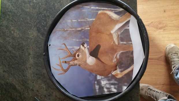 I limpiar la tapa con un cepillo de alambre y rociado con adhesivo de 3 m. Luego puse la imagen del calendario sobre la tapa presionándola firmemente alisado de burbujas de aire. Luego me lleve una navaja cuchillo y cortar cualquier exceso.