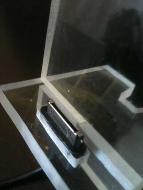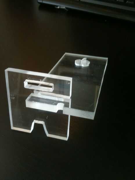 Hecho de dos piezas de plexiglás y un cable de iphone de ovejeros.
