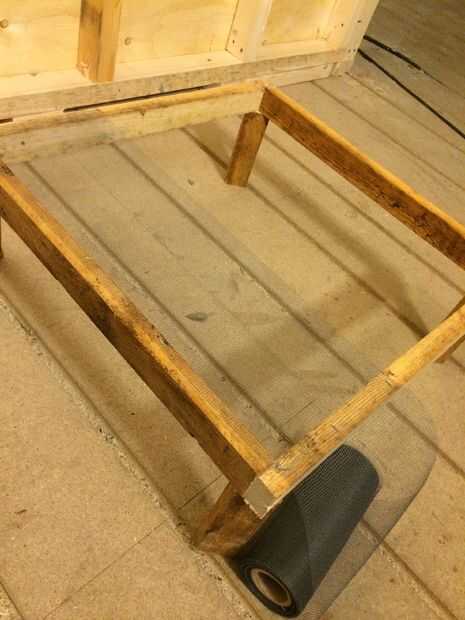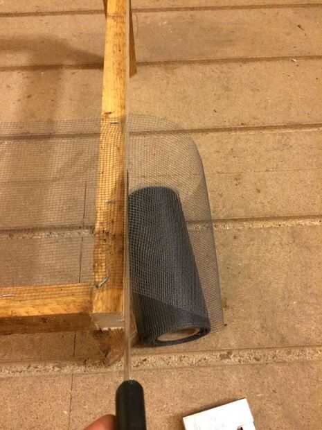 Poner la red en el soporte y el agregado con una pistola de grapas. Tratar de tirar al grapado por lo que se pone un poco rígido.