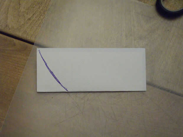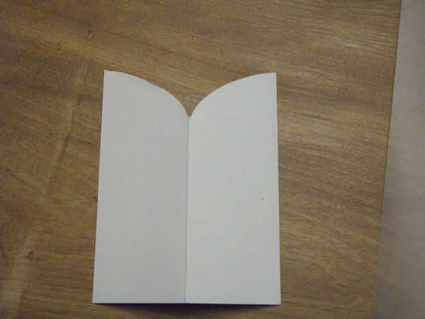 Dobla el papel por la mitad y traza una curva a través de un borde. (el pliegue es en la parte inferior). Luego corte a lo largo de la línea curva y desplegar su plantilla. La longitud del dispositivo STP depende de preferencias personales.