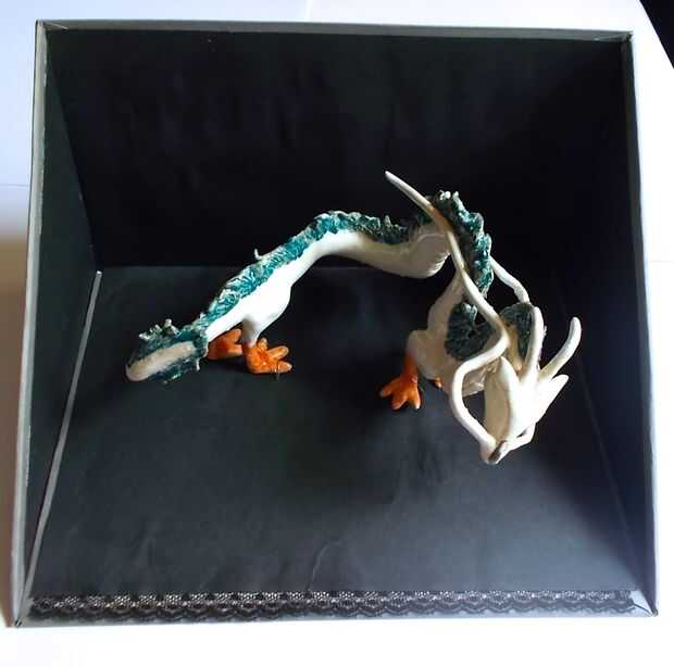 Dirijo a la Universidad pronto, y una de mis posesiones que insisto absolutamente en lo que es la delicada cerámica Haku (del Viaje de Chihiro) que hice como mi proyecto de libre elección para mi clase de cerámica. El problema es que he visto las condiciones de hacinamiento de los dormitorios, y mientras pueda quiero poner el dragón conmigo, va a ser difícil encontrar un lugar seguro donde no conseguir golpeado por los libros, cuerpos y todo eso.