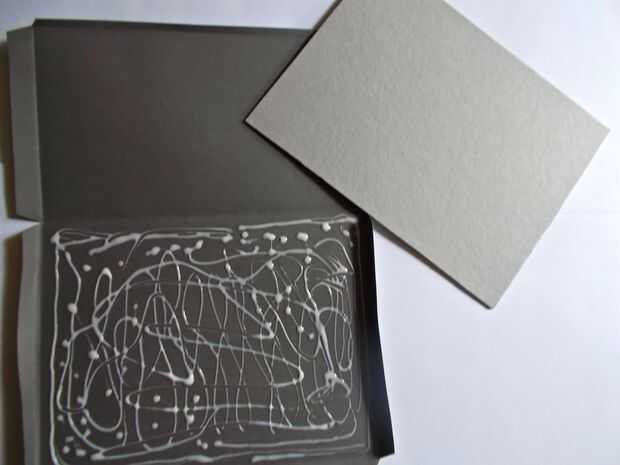 Una vez que has puesto de cartón en una región pegada, ejercer presión sobre toda la pieza con uno o dos libros.