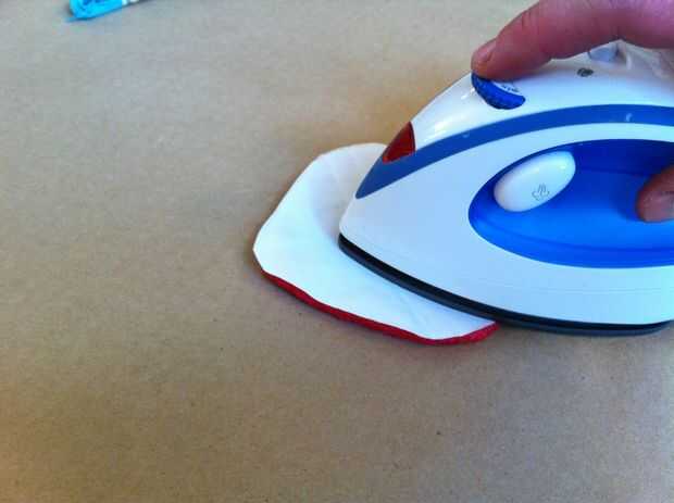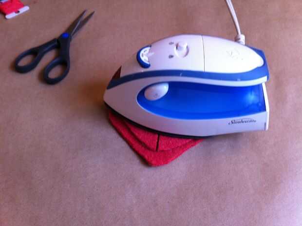 Coloque los dos pedazos más pequeños de la boca en la parte posterior de la pieza más grande de la boca con tan sólo un pequeño espacio entre ellos donde se cortan aparte. Les de hierro en la boquilla más grande. Esto reforzará la boca sin hacer la tela demasiado gruesa para doblar fácilmente.