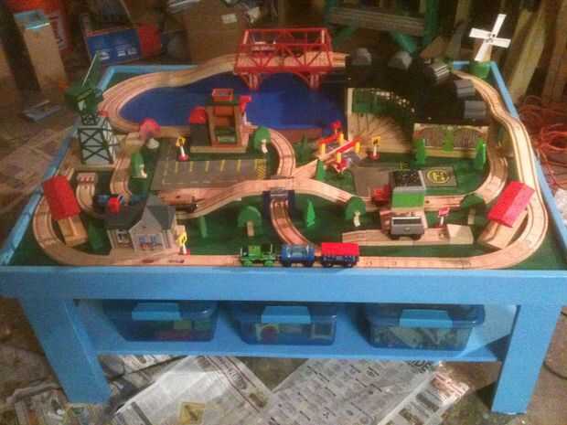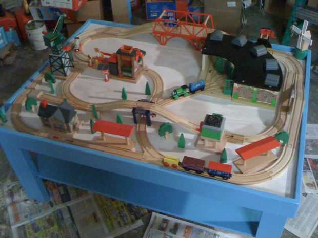 tengo 2 hijos, uno es de 3 1/2 y la otra 1 1/2 y 3 años está totalmente fuera de su loca mente para Thomas el motor del tanque. Vive, come y duerme Thomas y sus amigos. Durante uno de sus muchos perusals de los catálogos de Toys R Us, tropezó en la mesa de Thomas Train y es todo lo que ha estado hablando. Esto es algo que quiere para Navidad, pero la tabla solo es de $299,00. Añadir en muchos juegos (en cualquier lugar de $39 - $129) y trenes (en cualquier lugar de $9,99 - $29,99) fácilmente puede gastar cerca de $1.000. Así no es una opción, pero uno es.