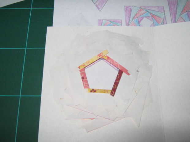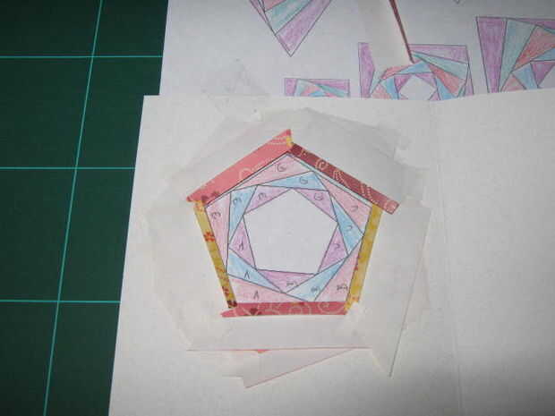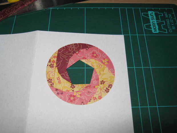 Una vez que usted ha trabajado su manera alrededor de una vez, es el momento de la segunda ronda. Hacer exactamente lo mismo que hiciste para la primera ronda. Sólo asegúrese de que usar el mismo papel en el mismo lado de la tarjeta. Tenga en cuenta que estos patrones de moverse un poco, así que procure no mezclar su papel. (Los patrones suministrados (a excepción del triángulo) han coloreado lados. De esa manera usted no mezcla los colores.)