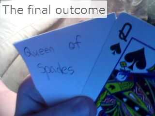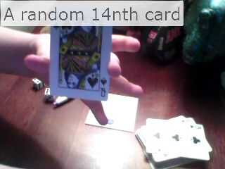 Antes de empezar el truco, cuenta a la tarjeta de 14nth hacia abajo (arriba hacia abajo) entonces escribirlo en el papel. No deje que el trickee ver lo que escribes. Para empezar, haz el trickee a tirar los dados. (no arrastrando los pies es necesario) Para obtener el truco de trabajar, los números dados, luego voltear los dados hacia el lado opuesto y añadir al total. No importa lo que se rueda, total, si se añade correctamente, será siempre igual a 14. Luego cuenta a la tarjeta de 14nth hacia abajo. Si lo hiciste correctamente, la tarjeta debe ser el escrito en el papel. A continuación mostramos al trickee su "predicción". Recuerde: A mago nunca revela sus secretos.
