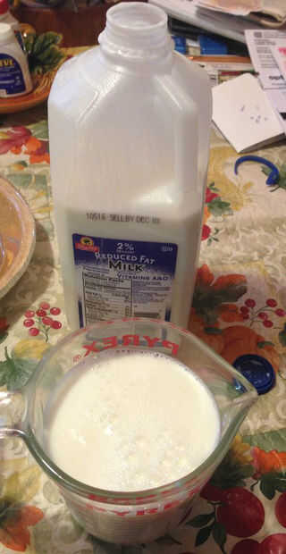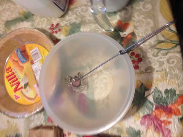 Coge un bol y un batidor 2 tazas de leche. Batir con la leche en la leche hasta que quede suave. Cerca de dos minutos debe hacerlo.