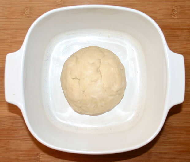 Mezcla de la manteca usando el cortador de pastelería, luego agregar agua fría 2 cucharadas a la vez hasta humedecer a rodar en una bola.