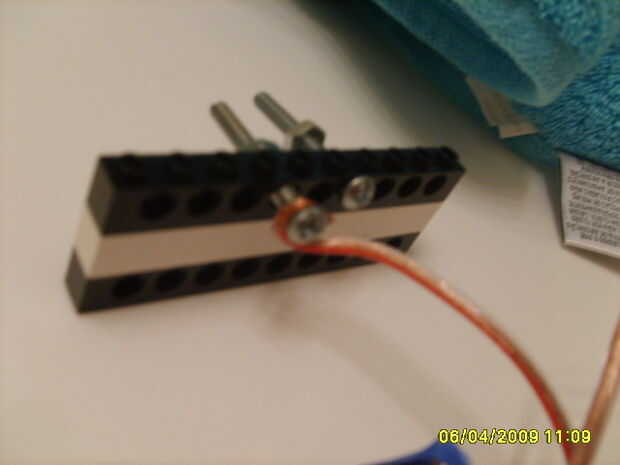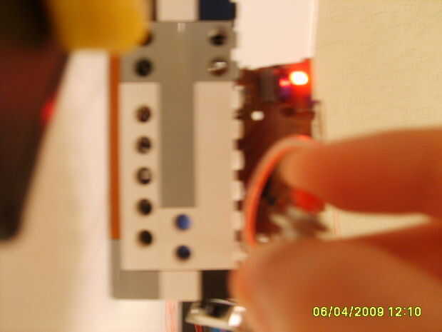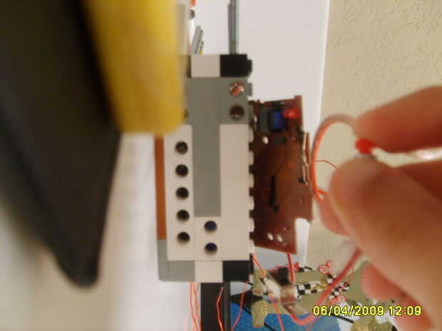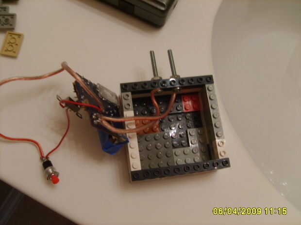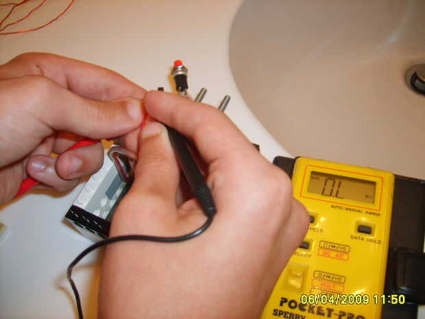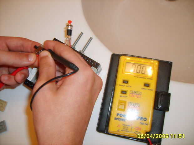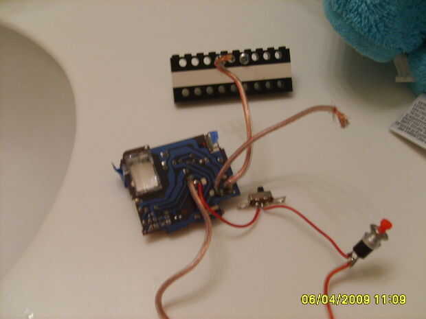 Este paso mostrará cómo conectar los cables de salida y como se prueba el interruptor para la posición "segura". Los cables de salida de alambre justo en frente de la cabeza antes de la pieza de lego, como se muestra en la figura #2. Ahora para la prueba de psition del interruptor. Si tienes un multímetro, como la de la foto #7, utilice el método uno. PARA ESTE MÉTODO, NO INSERTE LA BATERÍA HASTA QUE DESPUÉS DE LA PRUEBA. Ajuste el multímetro para medir resistencia. Lugar las puntas de prueba en los cables del interruptor de cambio. Si el multímetro no muestra ninguna resistencia, el interruptor está en "Brazo". Darle la vuelta al revés porque quiere en la "Caja fuerte". Cuadro #7 muestra la posición de "Brazo" y lo que debe aparecer en la pantalla. En el cuadro #8, muestra lo que la pantalla debe mostrar si la palanca del interruptor está en "Safe". La pantalla muestra "OL" o sobrecarga, lo que significa ninguna corriente está fluyendo. En algunos multímetros, puede no haber un número o nada en la pantalla. «OL» no aparece en cada multímetro. Después de esto, inserte la batería (Recuerde, el interruptor debe estar en "Safe"). Si no tienes un multímetro, no entre en pánico. Usted puede utilizar el método #2. Fotos #9 y #10 muestran esto. Cada circuito flash tiene una luz. parece. Inserte la batería en este momento, pero recuerde, sólo Inserte ahora si utiliza este método (#2). Empuje el interruptor de botón (la demostración de los cuadros que interruptor es el que empuja). Si la luz indicadora se enciende, el interruptor está en "Brazo". Si no, el interruptor está en "Safe". Dejarlo en esta posición.