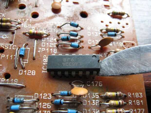 Thi es mi técnica desoldadura simple que he utilizado desde hace muchos años. Si encontrar un componente en un circuito viejo y necesita para su uso en mis experimentos electrónicos, entonces yo siempre salvarles en vez de comprar nuevo. El primer paso es identificar la parte o partes que requiere de la Junta Directiva (en este foro, estoy quitando un microchip, Foto 1), luego enchufe su soldador y encender. Foto 2 muestra a uno o dos pines del calor en un momento de la viruta. Cuando el estaño se haya fundido, rápidamente golpeó el tablero del circuito sobre una superficie dura, cara de la soldadura hacia abajo. La soldadura fundida de la climatizada perno o pernos se sueltan y solidifica casi al instante en la mesa. Continuar a hacer esto con cada pin del componente. El siguiente paso es conseguir una herramienta plana tal como una hoja plana Destornillador o pluma de lámina de cuchillo (Foto 3) a hacer cuidadosamente palanca el componente de la Junta. Inserte la herramienta en un lado primero, luego en el otro lado. Esto es para tratar de levantar el chip de la junta vertical no asi la curva de las patas. Si el chip es difícil de levantar en cualquier momento, verificar que la soldadura se ha eliminado totalmente, si no repita el paso 2 en los alfileres que ofende. Fotos 4 y 5 muestran el componente listo para ser utilizado en mi protoboard y eliminado con éxito. He incorporado dos videos de youtube (si su trabajado correctamente) para ayudar a demostrar mi técnica.