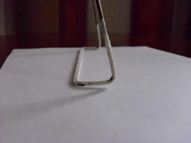 Una pulgada de cada curva que acaba de hacer la marca. Luego de estos la curva hacia arriba, debe mirar como la segunda imagen cuando termines.