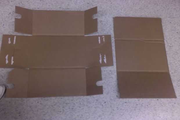 Comenzar por desplegar las cajas de cartón hasta que son planas y luego cortar todas las aletas hasta que te queda solo un rectángulo de cartón. A continuación utilice la cinta para unir dos rectángulos de cartón juntos. Continúe este proceso hasta que han convertido los ocho rectángulos de cartón individuales en cuatro pares de rectángulos de cartón atada con cinta adhesiva.