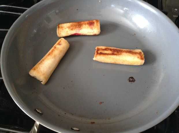 2. poner dos a tres rollos en la sartén a la vez, cuando hay demasiados, se llena de gente y quema.
