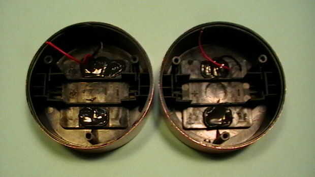 para ejecutar un LED de solo 1.5 V, 1.2V o baterías agotadas en particular en gran parte, es el famoso circuito Joule Thief usando un toroide en espiral.Sin embargo, cuando la recuperación de la célula solar y batería de una luz solar del jardín bara