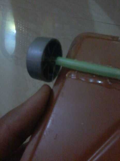 Soy juguete 2 usado coche ruedas y tapas de botellas de agua para las ruedas, tomar un palo de hierro y fijar la paja a la palanca de hierro, después de que usted necesita para todo las ruedas después fijar las ruedas a la palanca de hierro utilizando la pistola de pegamento caliente.