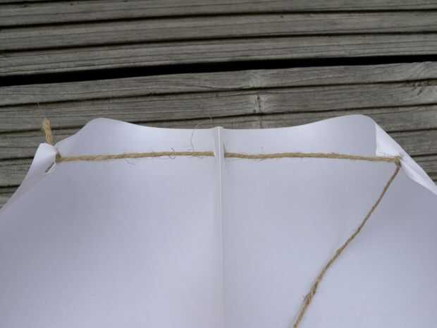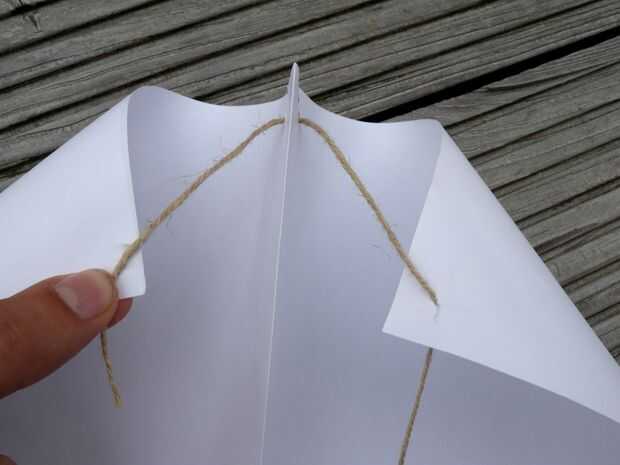 Ahora medir cuánto hilo se necesita. Las esquinas de la página están dobladas hacia adentro (no se mucho).