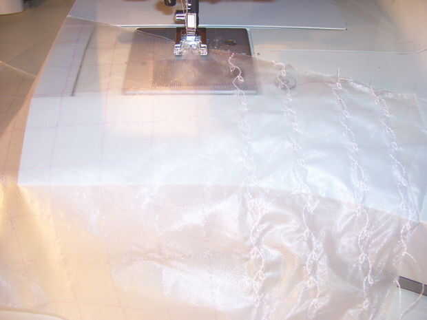 5. cuando todas las líneas verticales han sido cosidas, el tejido y continuar cosiendo las otras-líneas de cuadrícula.