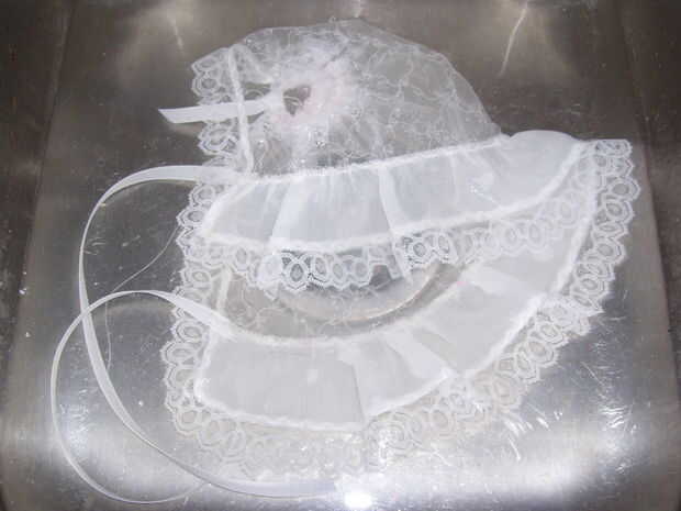 necesita:EncajeTul (un tipo más delgado y más flexible funciona mejor)Tela (cualquier tipo o peso funcionará. Yo usé muselina llano)TijerasHilo para que coincida con el cordón (yo usé normal hilo, no el botón súper gruesa)AgujaPernos deHorquillas (no