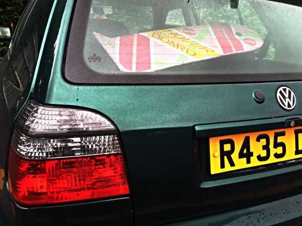 Quería conseguir un tablero para flotar, así que cortó un trozo de cartón en forma de un tablero de la libración y grabó algunos picadura fina en la parte inferior y atados los dos extremos de la cuerda a una pata de silla y mesa. Luego coloca un ven