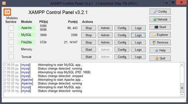 El XAMPP Control Panel v3.2.1 (para el servidor y base de datos) que incluye los siguientes programas: