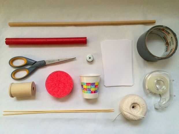 El molino de viento se puede hacer con casi cualquier material. Los materiales en los paréntesis son solo sugerencias; se puede imaginar a todo tipo de cosas que te servirán la misma función.