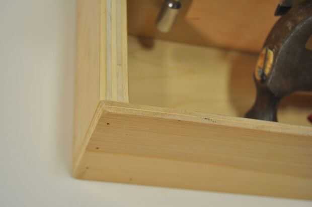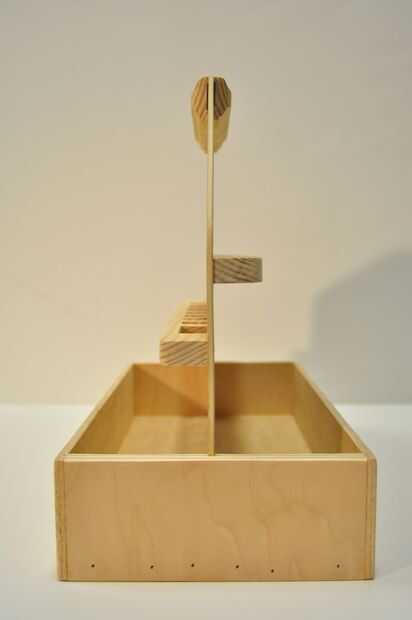 El fondo es una simple caja de madera, por clavos y pegamento. El montante es madera contrachapada fina empujada una ranura en la base, cortar con una sierra de mesa.
