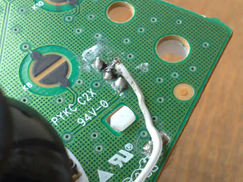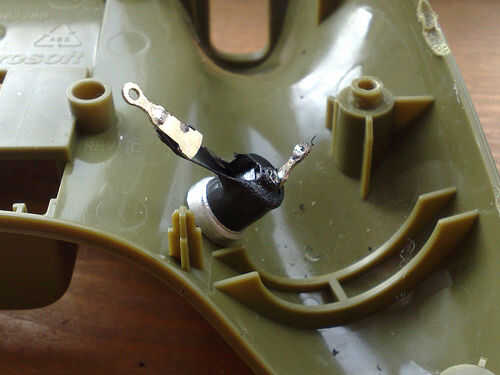 Hacer carreras de cableado que Manténgase alejado de los cojines de botón negro, movimiento del stick analógico y agujeros.