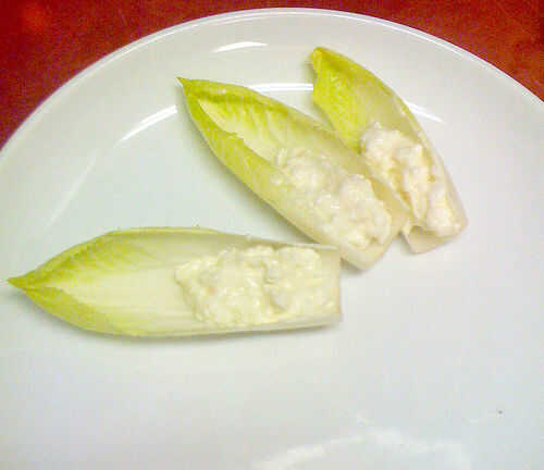 Personas generalmente quede sin hojas de endibia antes que acaba el relleno. Si tiene queso crema extra o mezcla de aguacate, pueden servir en galletas (o comer con las galletas a ti mismo mientras estás preparando cosas).