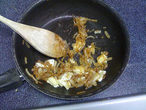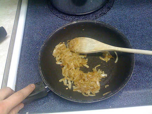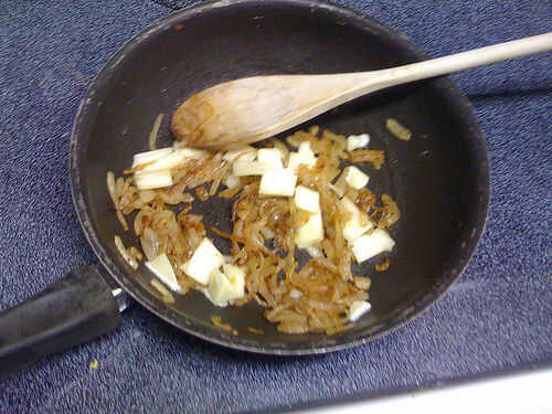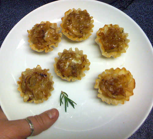 Cebolla caramelizada es sorprendentes, al menos en mi mente. Si estás haciendo un gran lote de estos, trate de usar una sartén grande; la superficie más tienes, más rápido se puede cocinar la cebolla hacia abajo. Cortar la cebolla en finos círculos cuartos. Derretir la manteca en una sartén. Añadir las rodajas de cebolla y espolvorear un poco de sal; sal ayuda a extraer la humedad de las células. Agregue las cebollas lo suficiente como para mantener de la quema y cocinar hasta que estén como oro profundo como quieras. Si tienes ganas de él, echar un chorrito de jugo de manzana cuando la cebolla está casi hecha. Debe cocinar abajo en un sabroso jarabe que se mezcla con la cebolla dulce. Si desea un sabor más oscuro, añadir un poco caldo de carne (baja en sodio) a la cebolla cuando ellos casi terminados. El caldo de carne y jugo de manzana va bien junto con las cebollas. Sabor de las cebollas y ver si necesita añadir sal ni pimienta. Si sus cáscaras ya se cuecen al horno, añadir el queso y las cebollas en la cacerola así que puede derretir. De lo contrario, añada el queso después de rellenar las cáscaras de la tartas con las cebollas y luego hornee. Personalmente soy muy amigo de provolone con cebolla caramelizada.
