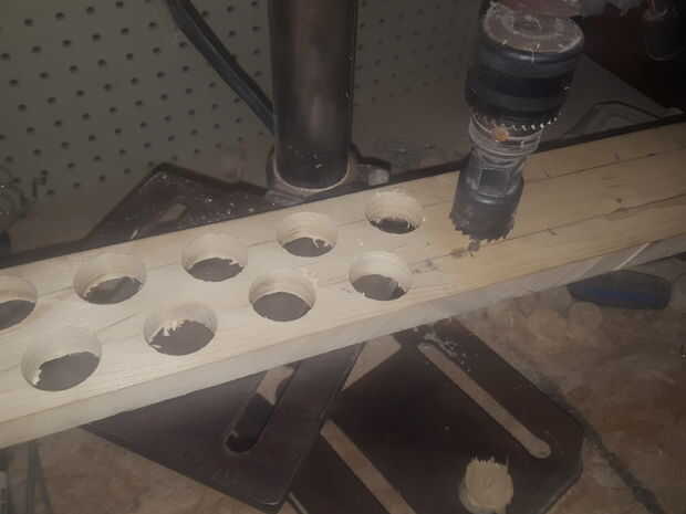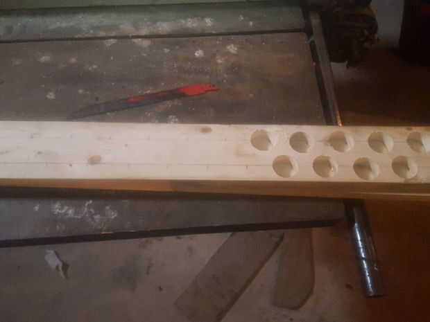 Este proyecto es tan simple bairly merece Descripción pero sería un instructable con hacia fuera de él. Hay muchas maneras de hacerlo pero esto es lo que hice. Utilicé un pice de desecho de la madera 3,5 pulgadas de ancho y 1 en verificar espesor. Marqué una línea desde el borde de 1 pulgada. He medido y había marcado el lugar de mis agujeros. Mina se compensan sobre todo porque mi wasent madera suficientemente amplia pero resulta realmente como ellos stagerd. Pongo 2 pulgadas entre los agujeros. No utilicé una sierra de 1 pulgada todo mi taladro para hacer los orificios.