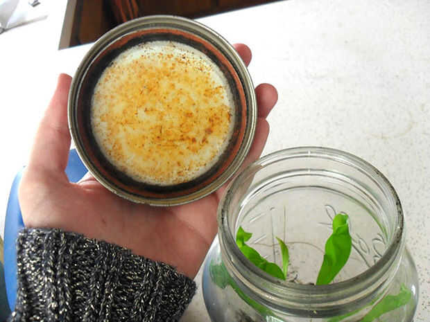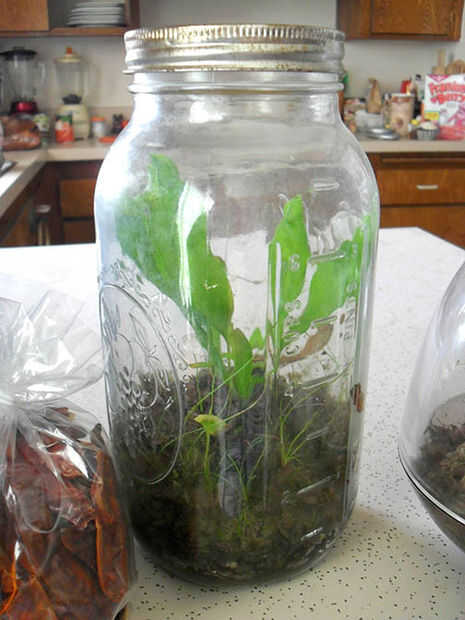 Tarros de Mason son grandes recipientes para plantas más altas de la jarra y tienen un gran ambiente campechano para huertos de ventana interior. Tenga en cuenta que la humedad dentro oxidará la tapa del metal con el tiempo. Su planta no sufra, pero desea cambiar hacia fuera para una tapa brillante fresca con el tiempo.