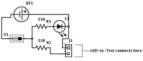 este Instructable muestra cómo construir un pequeño LED probador de sólo unas pocas partes.Proporciona una corriente casi constante sobre una amplia gama de tensiones de alimentación. Es muy conveniente probar un montón de LEDs de diferentes colores
