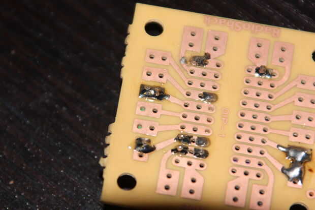 Colocar y soldar el puente y la resistencia última como se muestra arriba. Moviéndose a lo largo...