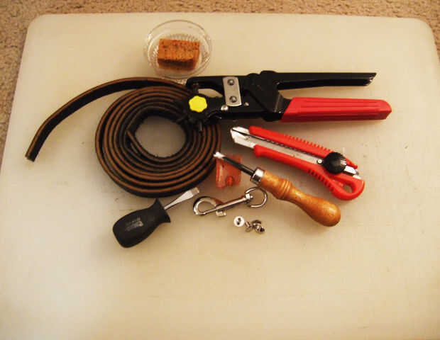 -5/8 "correa latigo. Esto se ejecutará entre $10 y $15 (usted puede conseguir en una tienda de cuero como fábrica de cuero de Tandy. Colores suelen ser negro o Burdeos.)