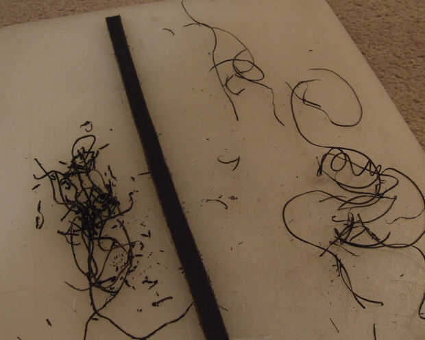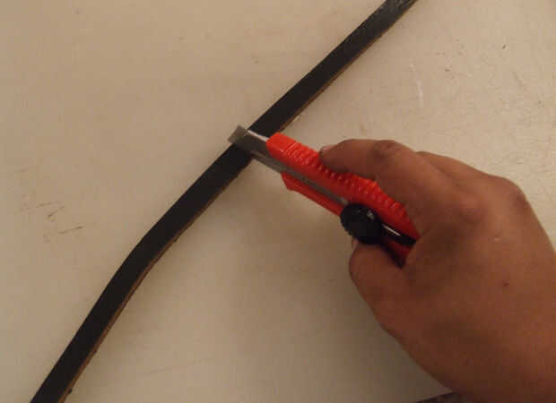 Cortar el cuero a su longitud deseada. Añadir un pie a que la longitud para tener en cuenta para el final del mango y clip. (corte 6 pies por 5 pies.)