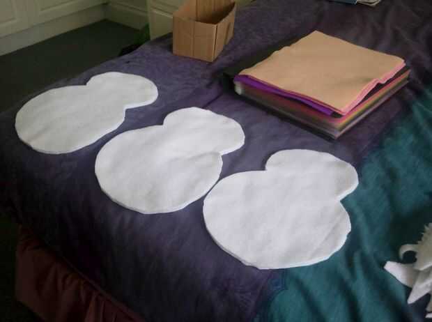Coloque los lados buen mullidos del material uno frente al otro y fijar la plantilla en el lado 'malo' para trazar y cortar ambas piezas. Estas son bastante grandes así que no te preocupes que para dejar un margen de costura. Cortar tantas como quieras, hice 4 porque estoy dando hacia fuera para Navidad :D