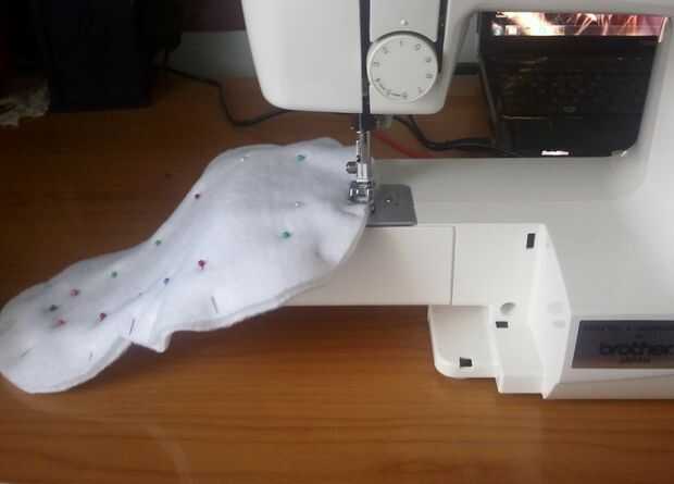 Perno de cada lado para que no se mueve mientras usted está tratando de coser. Asegúrese de que coser con los lados bien hacia dentro y deja un pequeño agujero en la parte inferior para darle la vuelta. El material que utilicé fue tan suave y ligeramente elástico por lo que queda un agujero muy pequeño. Dependiendo de su material deberá dejar un espacio más grande que lo que he hecho.