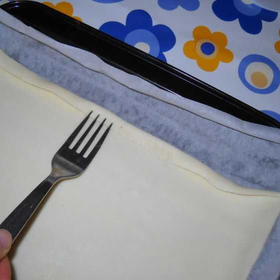 Doblar 1 cm en la frontera, en los cuatro lados y empuje hacia abajo con un tenedor.