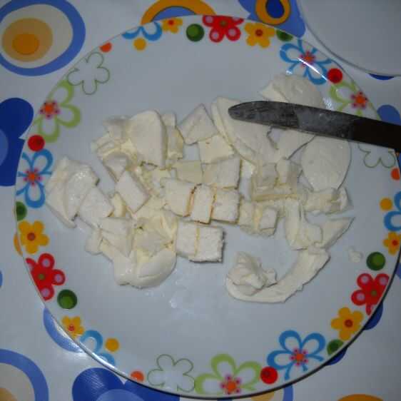 Cortar la mozzarella en trozos y ponerlos sobre la base.