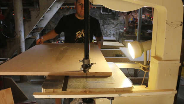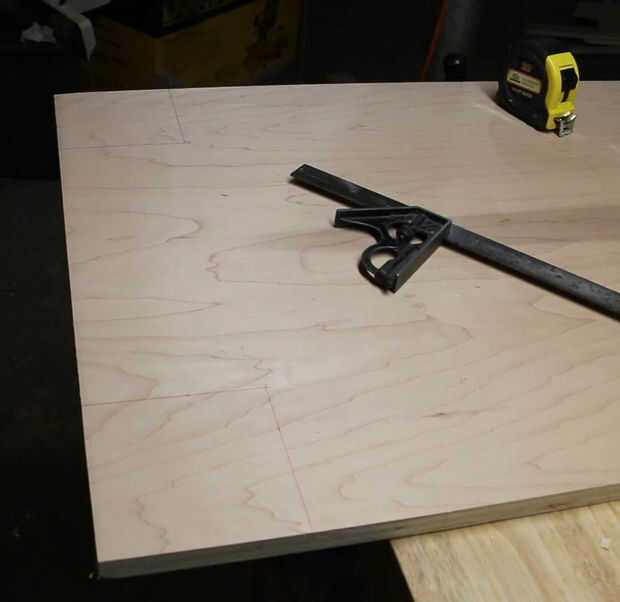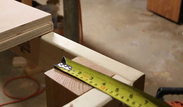 A continuación, mida y marque ranuras para ser cortada en cada esquina de la plataforma que por lo que puede caber en su lugar contra los 4 x 4, miden aproximadamente 5" de cuadrados. Cortarlas en un Sierra de cinta o una sierra de calar. Controlar ajuste y recorte el exceso según sea necesario. Atornille las piezas de estante y mesa con los tornillos de paneles de yeso de 1.5".