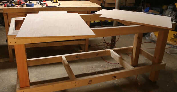 tenemos un garaje bastante pequeño y unas mesas para trabajar en, pero son bastante insatisfactorias y temporales (es decir, caballetes con madera, plegable, mesas, etc..). Decidí construir mi propia mesa de trabajo que es simple, sólida y relativame