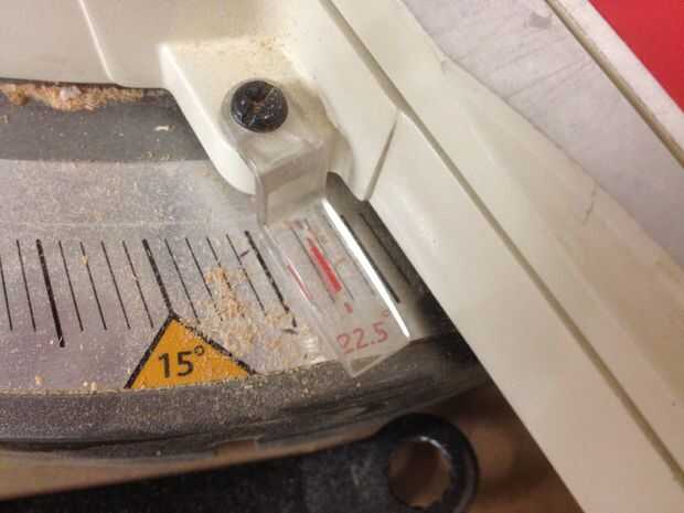 Coloque la sierra para hacer su primer corte angular. @ 22,5 grados.