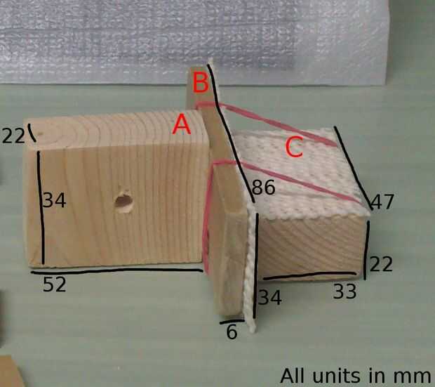 2) usando la sierra cortar las tres piezas de madera a las dimensiones indicadas en el cuadro.