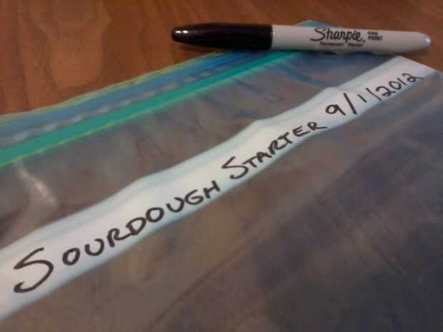 Tome un galón tamaño bolso plástico del congelador, uno realmente resistente que con el sello más grueso de plástico y doble cremallera. Estos son grandes para su motor de arranque ya que permiten fácilmente la mezcla y su motor de arranque de la alimentación en el futuro. Asegúrese de que es lo suficientemente grande como para por lo menos cuatro veces los ingredientes iniciales, como su motor de arranque ampliará y producen gases como se fermenta. Yo uso una bolsa de congelador un galón y que funciona bien para mí. Si usted planea mantener su motor de arranque va, asegúrese de etiquetar la bolsa con el día comenzó.