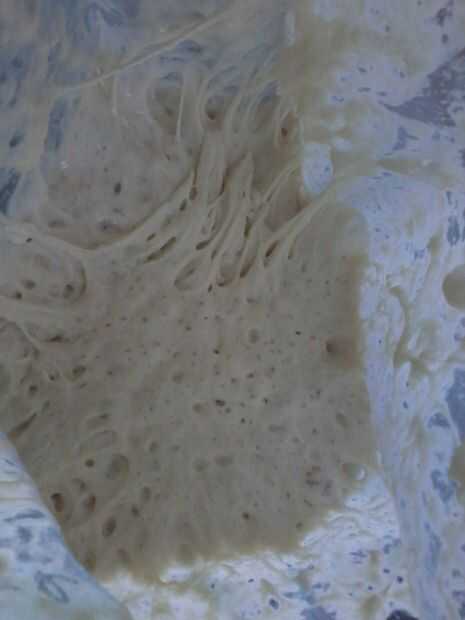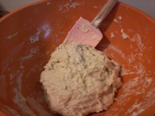 En un tazón grande agradable de no metal (mantenga la regla de cuatro veces su ingredientes) combinar todos los ingredientes y amasar hasta que se mezclan. Vas a tener una bola de masa ligeramente grumosa y pegajosa. Si es un poco demasiado seco (algunos entrantes pueden ser más secos que otros) puede agregar más agua tibia, una cucharada a la vez, mezclando bien entre. Esta es la esponja.